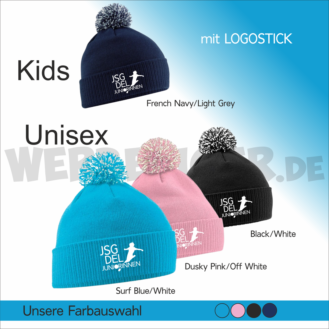 Details: Weiches Polyacryl (Soft Touch), hochwertiger doppellagiger Strick, 2-farbiger Bommel