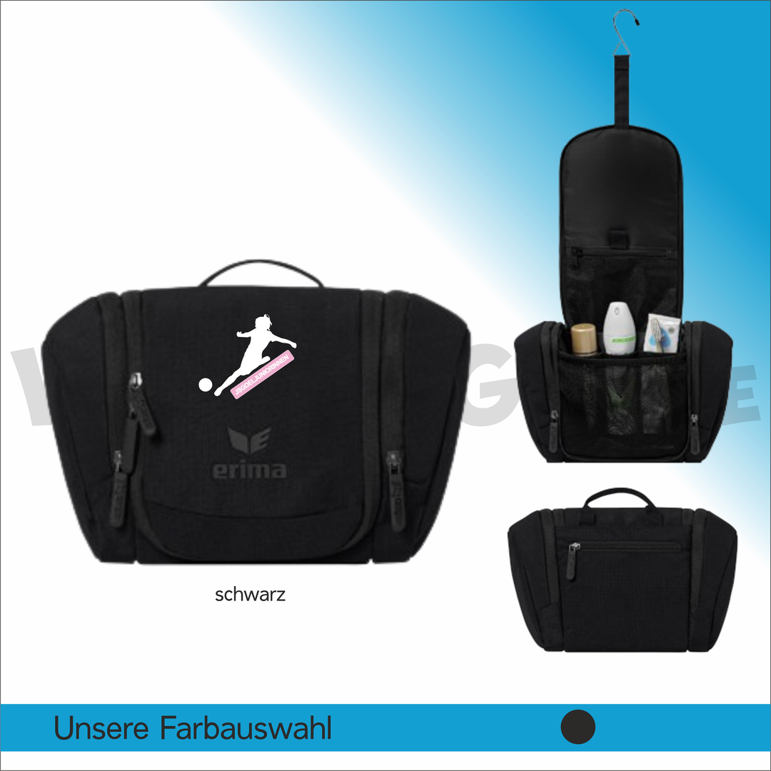 - Mit der strapazierfähigen Kulturtasche hast du nach dem Training oder Spiel alles griffbereit. Mit praktischer Fronttasche und Tragegriff zum Aufhängen.